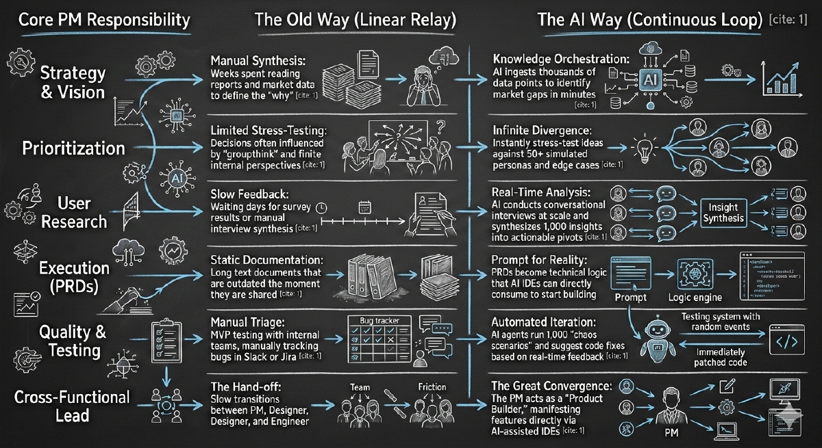 The traditional PM lifecycle is being compressed. What used to take quarters now takes weeks. The roles we once considered distinctโDesigner, Researcher, Engineerโare merging into a single, high-velocity execution layer.